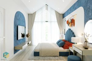 Mẫu thiết kế biệt thự phong cách Indochine kết hợp phong cách santorini đẹp và sang trọng.